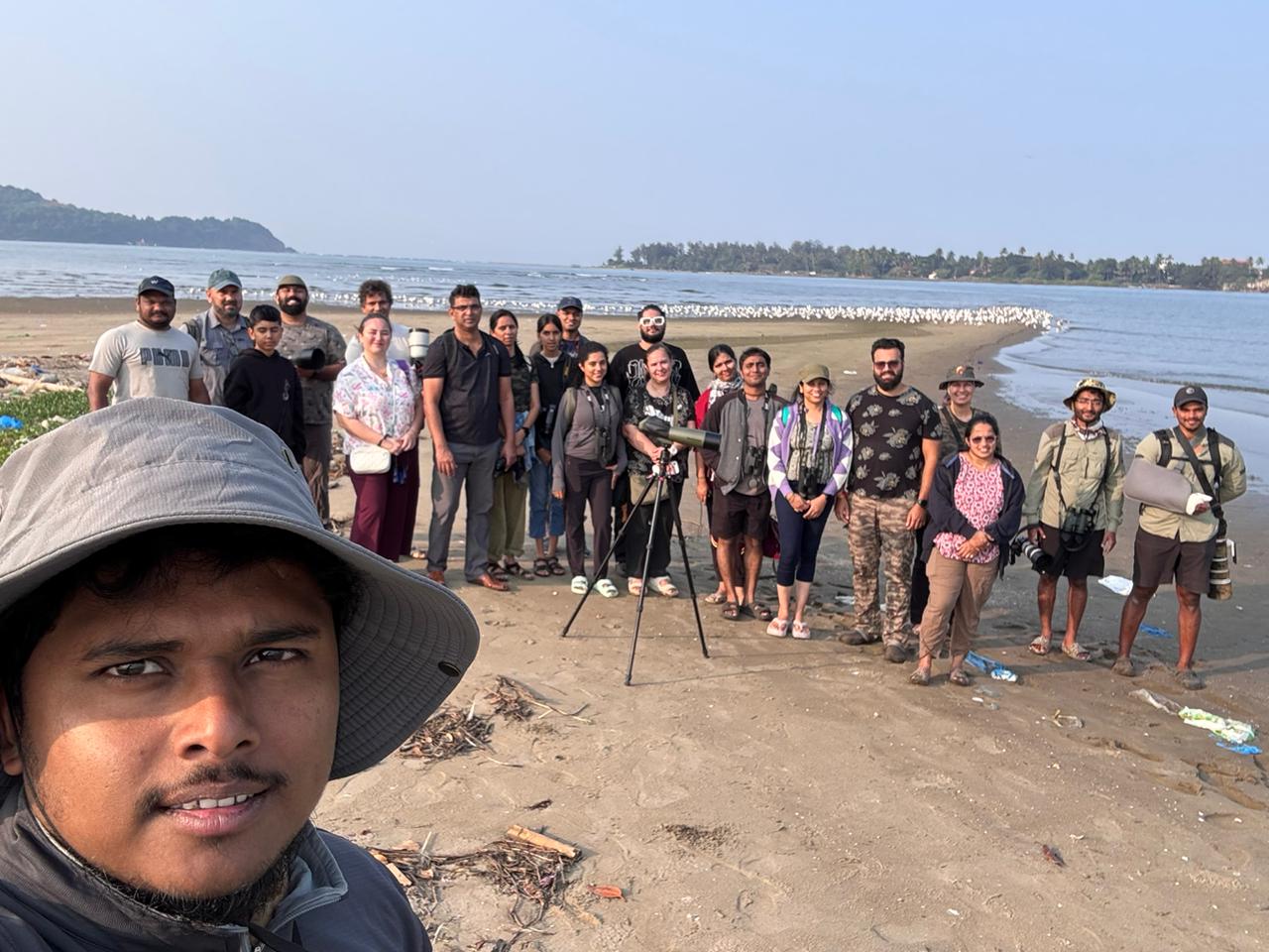 A bird walk was conducted at Morjim Beach and the Chapora Sandbar, Goa, led by Jalmesh Karapurkar in collaboration with Wild Footprints, with 22 participants, on the early morning of 18th January. The walk began with a boat ride into the Chapora Estuary, during which a White-bellied Sea Eagle and a Striated Heron were sighted, setting an exciting tone for the day. Upon reaching the island, participants witnessed a spectacular congregation of shorebirds that appeared like a white sheet spread across the blue waters, with sightings of gulls, Whimbrel, Eurasian Curlew, and multiple tern species, including notable records of Pallas’s Gull, Sandwich Tern, and Caspian Tern. An encounter with a critically injured Lesser Black-backed Gull also offered a sobering insight into the challenges faced by birds in the wild. Overall, the walk provided a powerful learning experience and highlighted the crucial role of the Chapora Estuary as an essential habitat for migratory shorebirds.